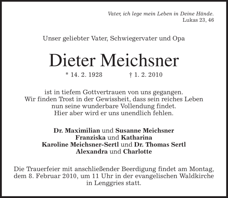 Hier finden Sie alle Traueranzeigen aus der Zeitung, die bisher für Dieter Meichsner erschienen sind. Weitere Traueranzeigen, die in der Zeitung erscheinen, werden hier ebenfalls aufgelistet