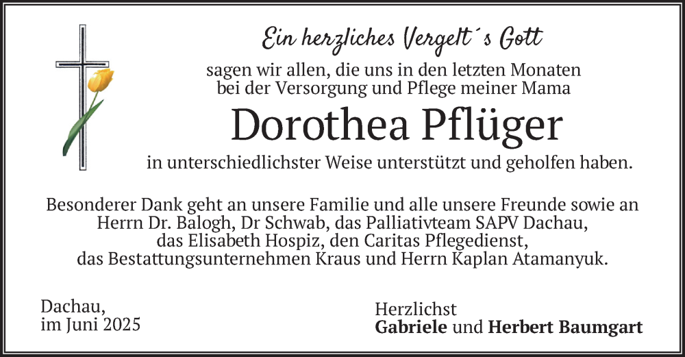 Hier finden Sie alle Traueranzeigen aus der Zeitung, die bisher für Dorothea Pflüger erschienen sind. Weitere Traueranzeigen, die in der Zeitung erscheinen, werden hier ebenfalls aufgelistet