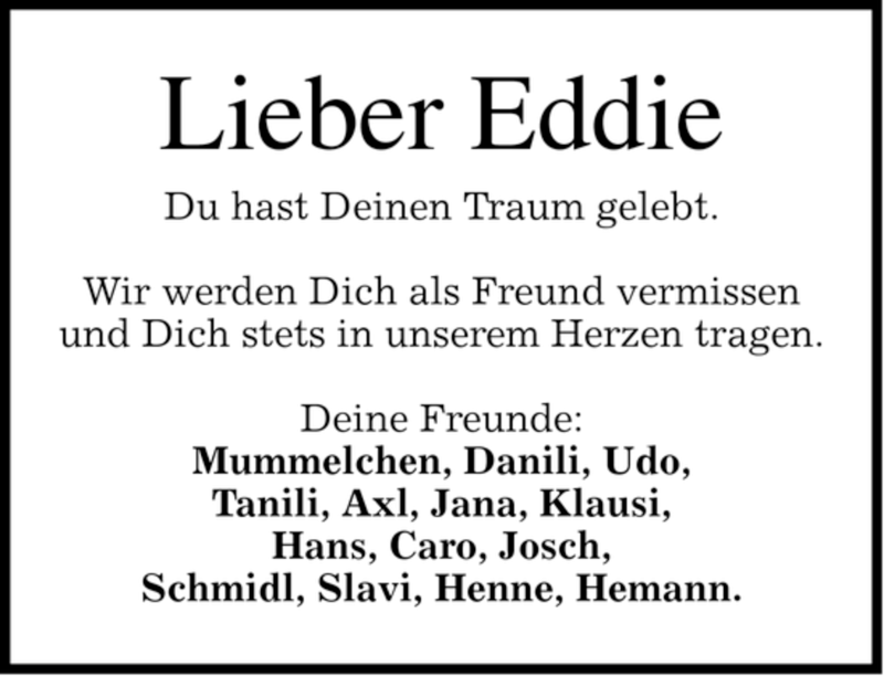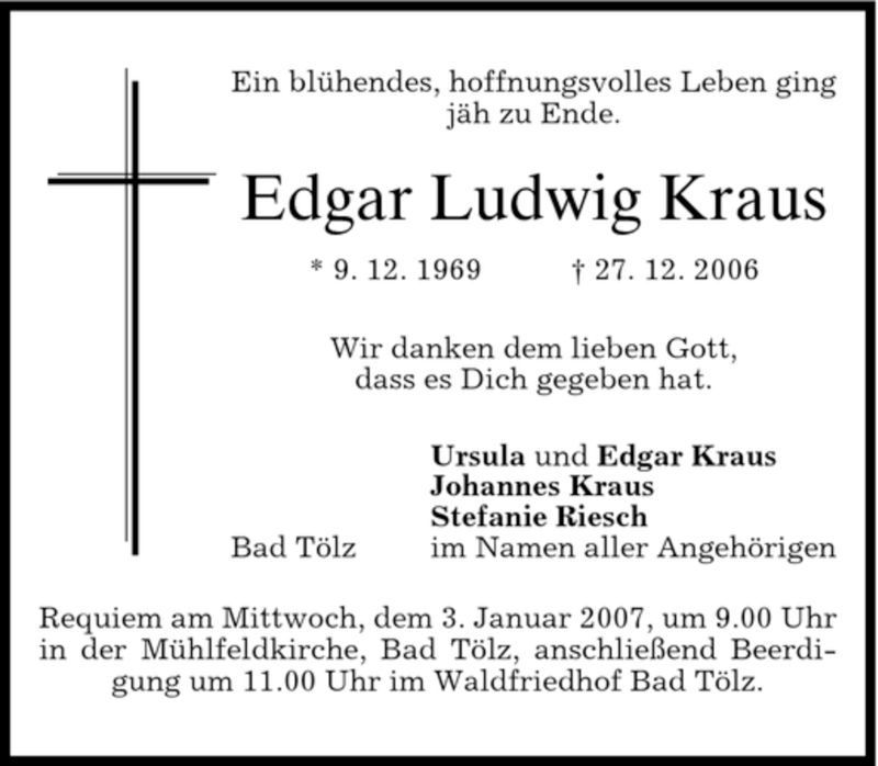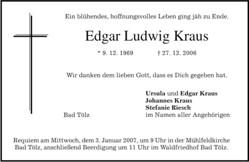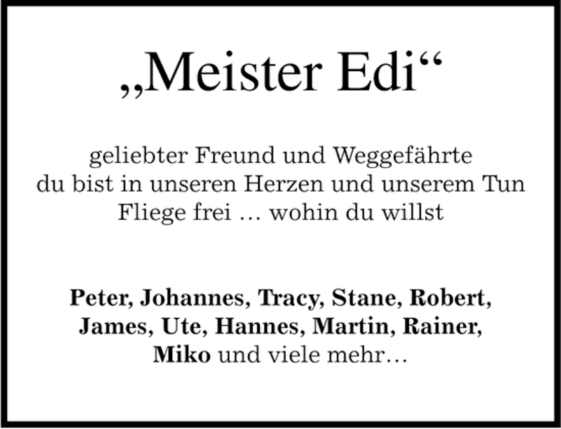 Hier finden Sie alle Traueranzeigen aus der Zeitung, die bisher für Edgar Kraus erschienen sind. Weitere Traueranzeigen, die in der Zeitung erscheinen, werden hier ebenfalls aufgelistet