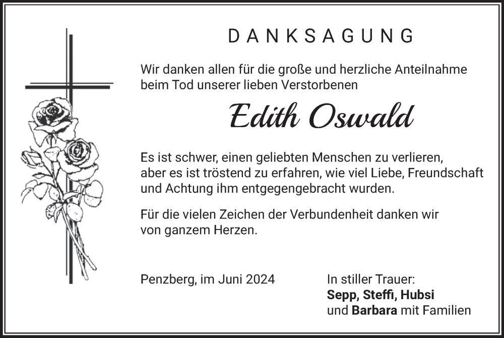Hier finden Sie alle Traueranzeigen aus der Zeitung, die bisher für Edith Oswald erschienen sind. Weitere Traueranzeigen, die in der Zeitung erscheinen, werden hier ebenfalls aufgelistet