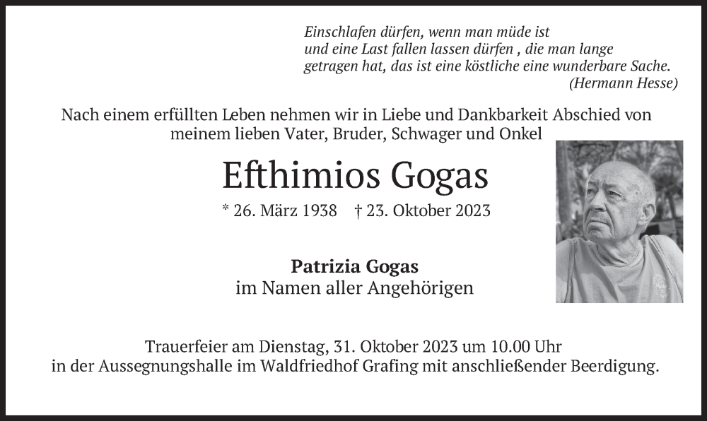 Hier finden Sie alle Traueranzeigen aus der Zeitung, die bisher für Efthimios Gogas erschienen sind. Weitere Traueranzeigen, die in der Zeitung erscheinen, werden hier ebenfalls aufgelistet