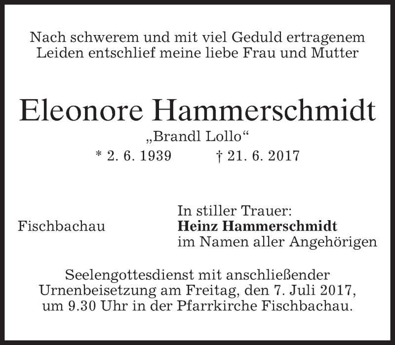 Hier finden Sie alle Traueranzeigen aus der Zeitung, die bisher für Eleonore Hammerschmidt erschienen sind. Weitere Traueranzeigen, die in der Zeitung erscheinen, werden hier ebenfalls aufgelistet