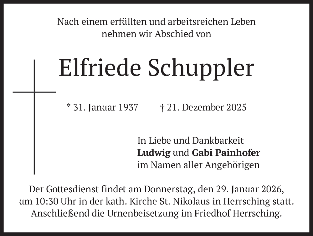 Hier finden Sie alle Traueranzeigen aus der Zeitung, die bisher für Elfriede Schuppler erschienen sind. Weitere Traueranzeigen, die in der Zeitung erscheinen, werden hier ebenfalls aufgelistet