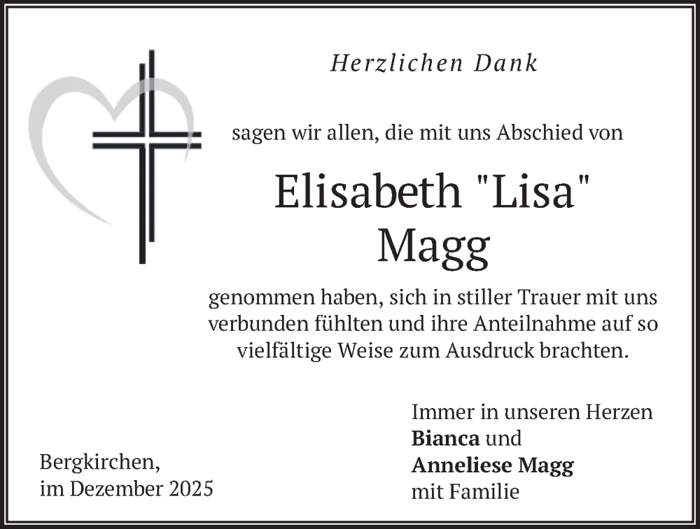 Hier finden Sie alle Traueranzeigen aus der Zeitung, die bisher für Elisabeth Magg erschienen sind. Weitere Traueranzeigen, die in der Zeitung erscheinen, werden hier ebenfalls aufgelistet