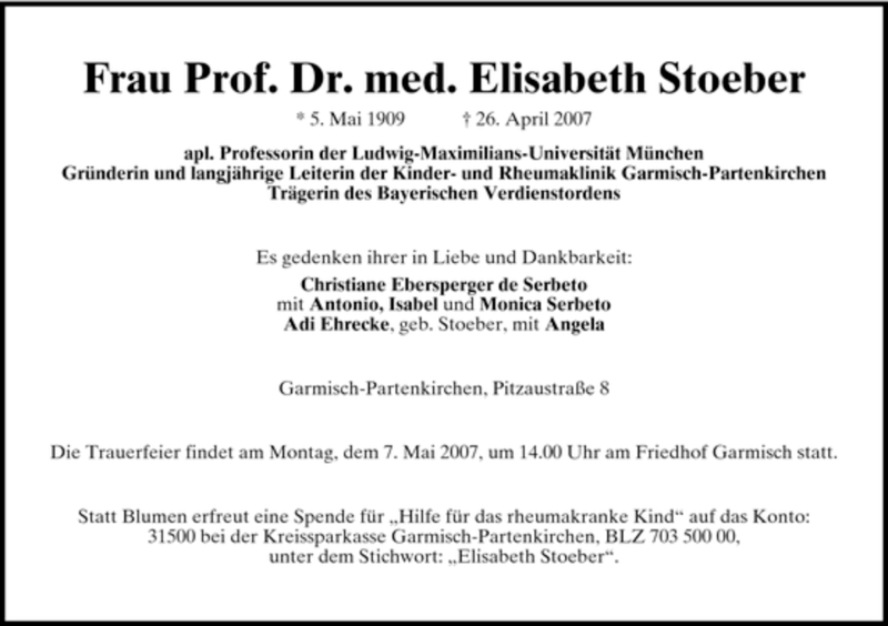 Hier finden Sie alle Traueranzeigen aus der Zeitung, die bisher für Elisabeth Stoeber erschienen sind. Weitere Traueranzeigen, die in der Zeitung erscheinen, werden hier ebenfalls aufgelistet