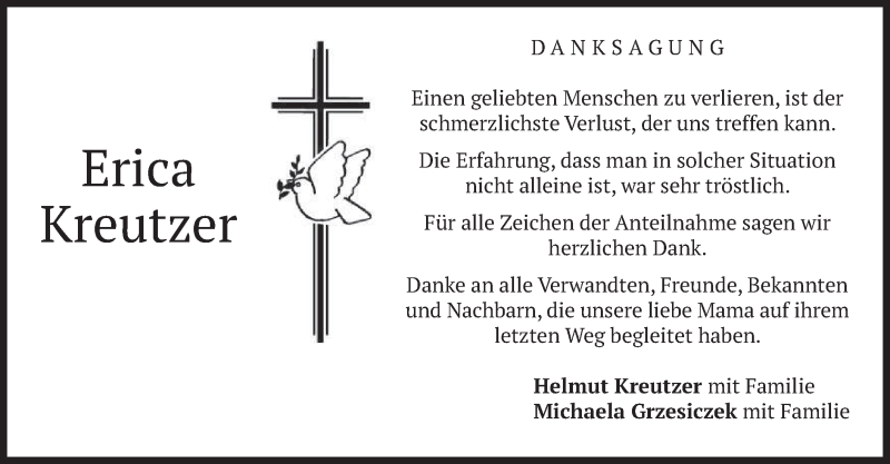 Hier finden Sie alle Traueranzeigen aus der Zeitung, die bisher für Erica Kreutzer erschienen sind. Weitere Traueranzeigen, die in der Zeitung erscheinen, werden hier ebenfalls aufgelistet