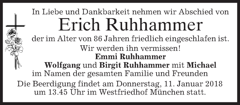 Hier finden Sie alle Traueranzeigen aus der Zeitung, die bisher für Erich Ruhhammer erschienen sind. Weitere Traueranzeigen, die in der Zeitung erscheinen, werden hier ebenfalls aufgelistet