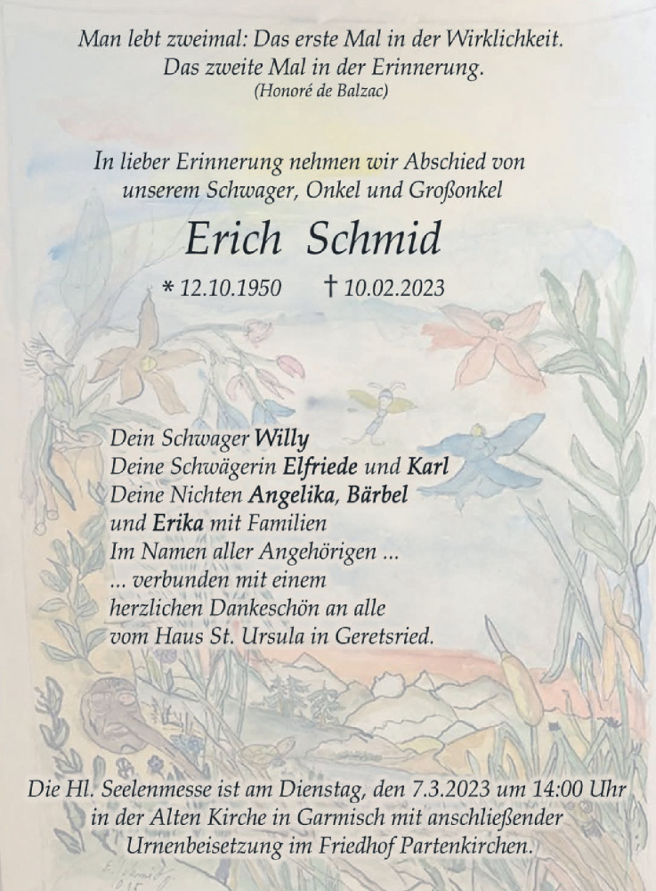 Hier finden Sie alle Traueranzeigen aus der Zeitung, die bisher für Erich Schmid erschienen sind. Weitere Traueranzeigen, die in der Zeitung erscheinen, werden hier ebenfalls aufgelistet