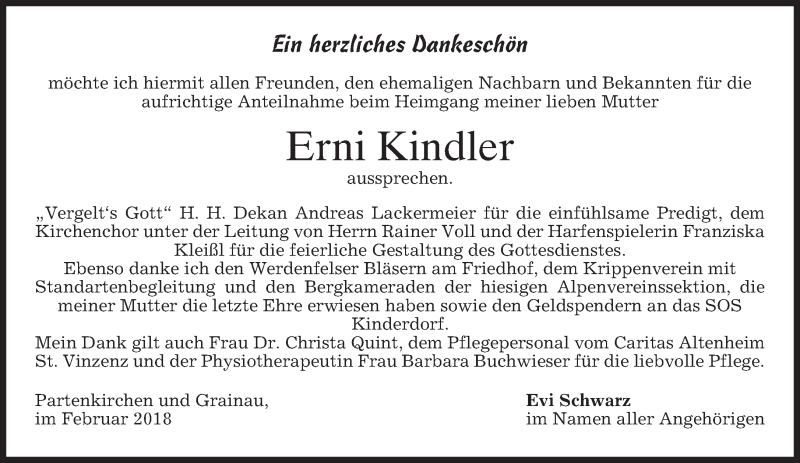 Hier finden Sie alle Traueranzeigen aus der Zeitung, die bisher für Erni Kindler erschienen sind. Weitere Traueranzeigen, die in der Zeitung erscheinen, werden hier ebenfalls aufgelistet