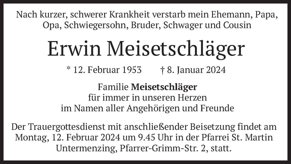 Hier finden Sie alle Traueranzeigen aus der Zeitung, die bisher für Erwin Meisetschläger erschienen sind. Weitere Traueranzeigen, die in der Zeitung erscheinen, werden hier ebenfalls aufgelistet