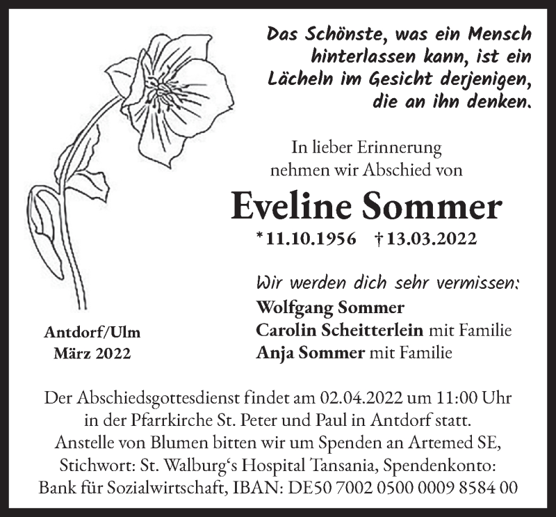 Hier finden Sie alle Traueranzeigen aus der Zeitung, die bisher für Eveline Sommer erschienen sind. Weitere Traueranzeigen, die in der Zeitung erscheinen, werden hier ebenfalls aufgelistet