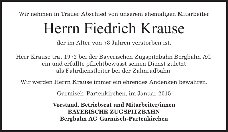 Hier finden Sie alle Traueranzeigen aus der Zeitung, die bisher für Fiedrich Krause erschienen sind. Weitere Traueranzeigen, die in der Zeitung erscheinen, werden hier ebenfalls aufgelistet