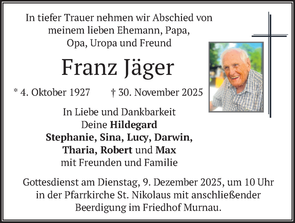 Hier finden Sie alle Traueranzeigen aus der Zeitung, die bisher für Franz Jäger erschienen sind. Weitere Traueranzeigen, die in der Zeitung erscheinen, werden hier ebenfalls aufgelistet