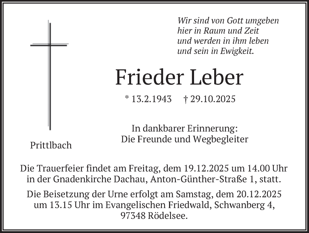 Hier finden Sie alle Traueranzeigen aus der Zeitung, die bisher für Frieder Leber erschienen sind. Weitere Traueranzeigen, die in der Zeitung erscheinen, werden hier ebenfalls aufgelistet
