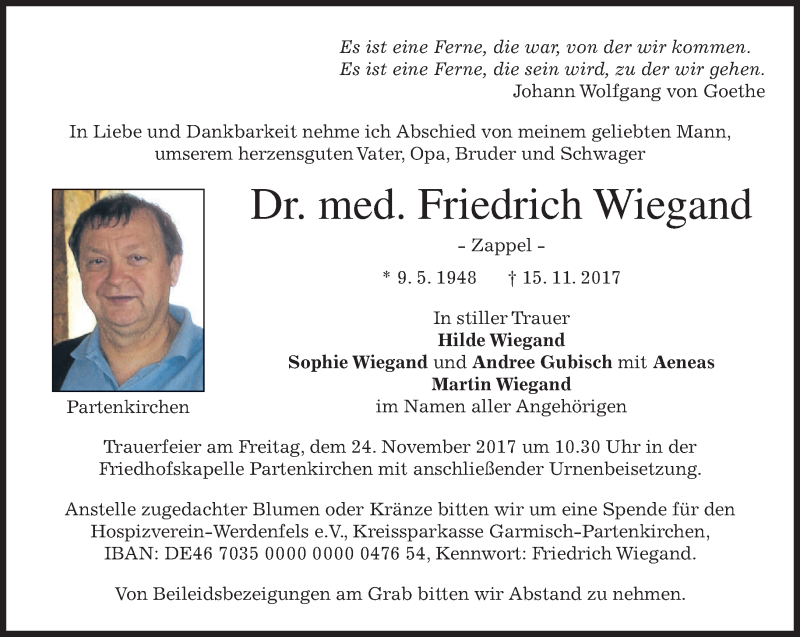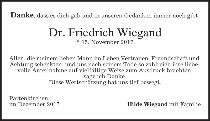 Hier finden Sie alle Traueranzeigen aus der Zeitung, die bisher für Friedrich Wiegand erschienen sind. Weitere Traueranzeigen, die in der Zeitung erscheinen, werden hier ebenfalls aufgelistet