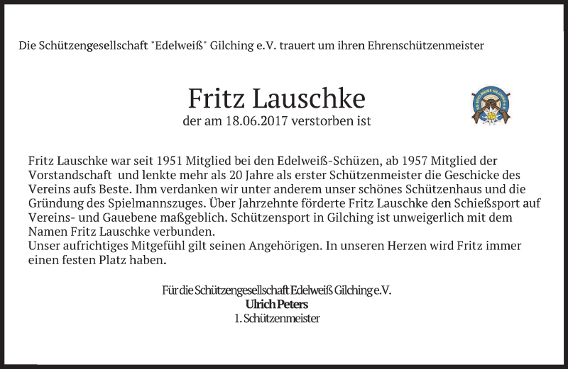 Hier finden Sie alle Traueranzeigen aus der Zeitung, die bisher für Fritz Lauschke erschienen sind. Weitere Traueranzeigen, die in der Zeitung erscheinen, werden hier ebenfalls aufgelistet
