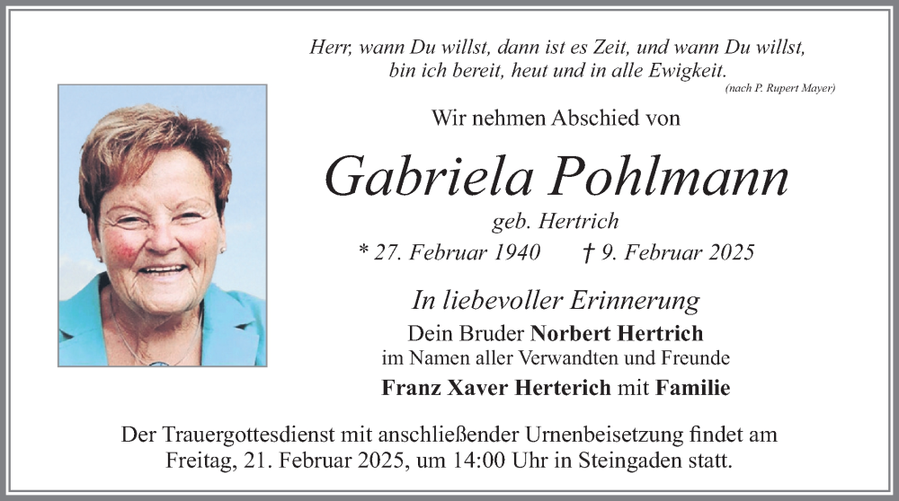 Hier finden Sie alle Traueranzeigen aus der Zeitung, die bisher für Gabriela Pohlmann erschienen sind. Weitere Traueranzeigen, die in der Zeitung erscheinen, werden hier ebenfalls aufgelistet