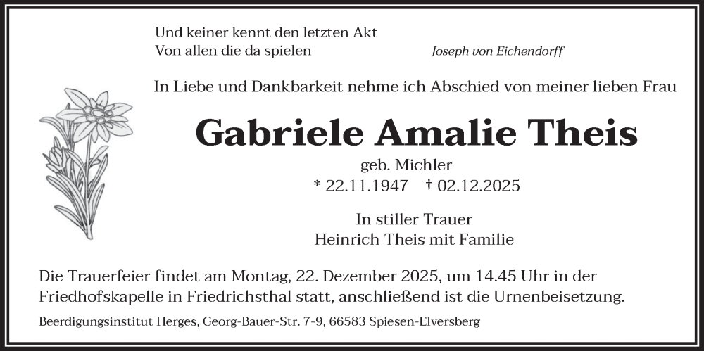 Hier finden Sie alle Traueranzeigen aus der Zeitung, die bisher für Gabriele Amalie Theis erschienen sind. Weitere Traueranzeigen, die in der Zeitung erscheinen, werden hier ebenfalls aufgelistet