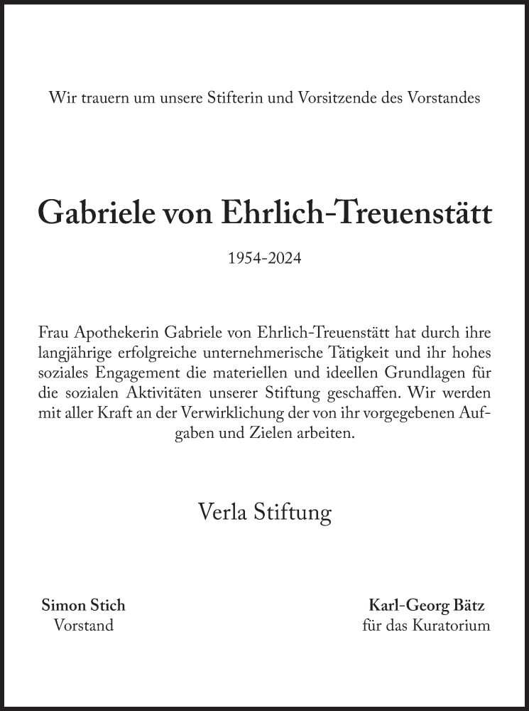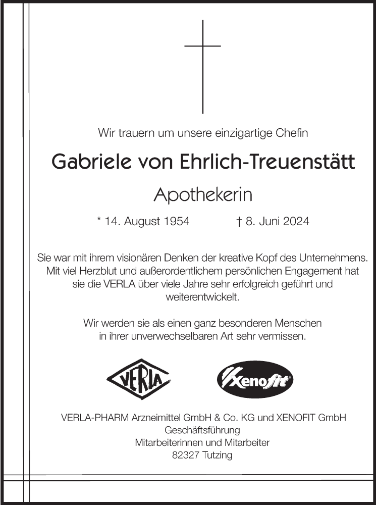 Hier finden Sie alle Traueranzeigen aus der Zeitung, die bisher für Gabriele von Ehrlich-Treuenstätt erschienen sind. Weitere Traueranzeigen, die in der Zeitung erscheinen, werden hier ebenfalls aufgelistet