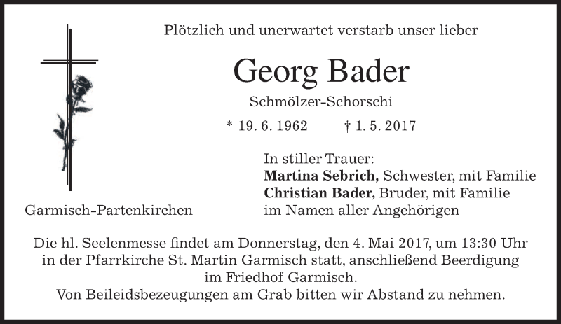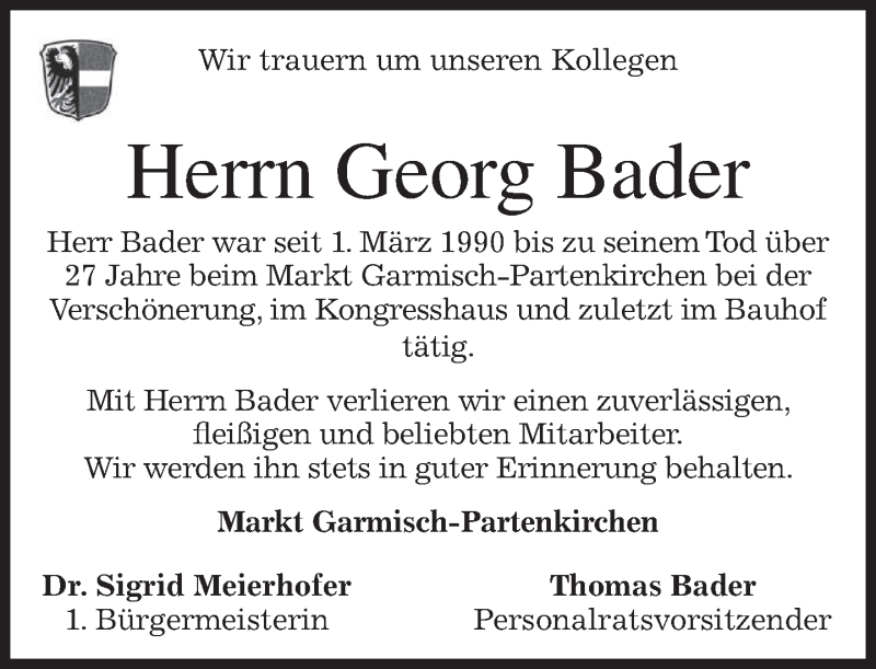 Hier finden Sie alle Traueranzeigen aus der Zeitung, die bisher für Georg Bader erschienen sind. Weitere Traueranzeigen, die in der Zeitung erscheinen, werden hier ebenfalls aufgelistet