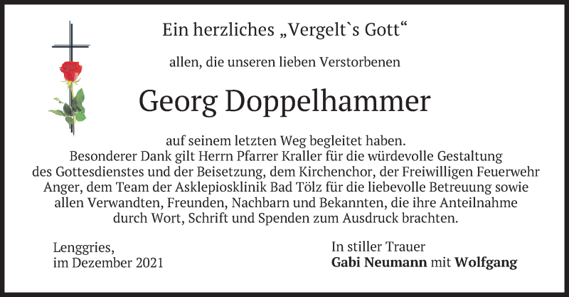 Hier finden Sie alle Traueranzeigen aus der Zeitung, die bisher für Georg Doppelhammer erschienen sind. Weitere Traueranzeigen, die in der Zeitung erscheinen, werden hier ebenfalls aufgelistet