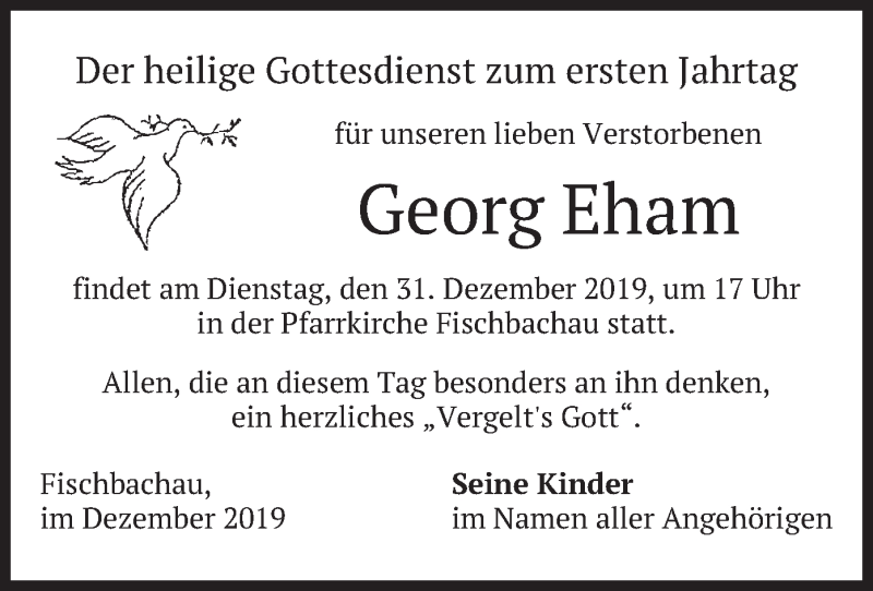 Hier finden Sie alle Traueranzeigen aus der Zeitung, die bisher für Georg Eham erschienen sind. Weitere Traueranzeigen, die in der Zeitung erscheinen, werden hier ebenfalls aufgelistet