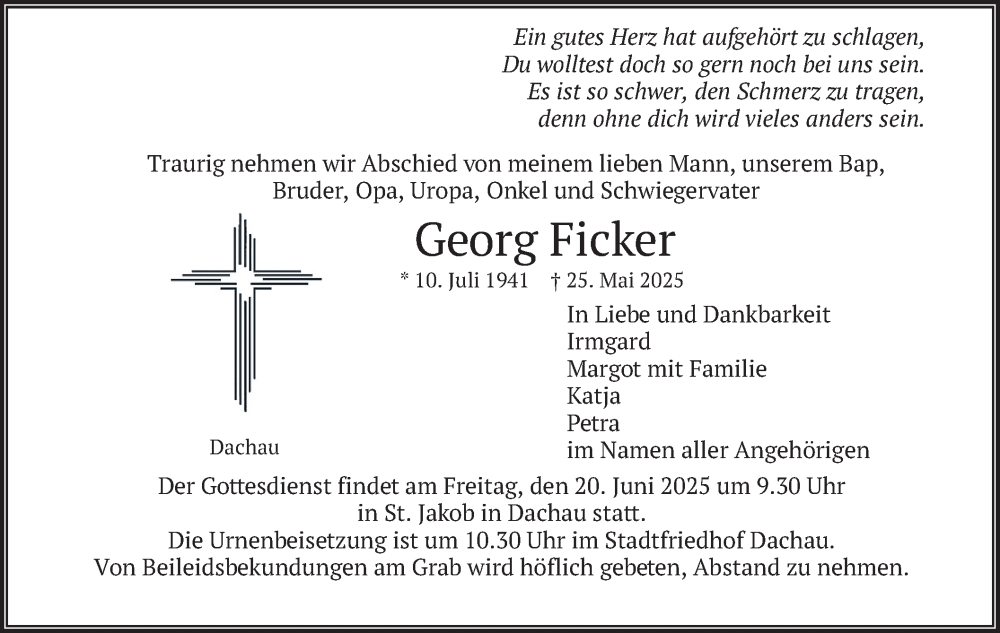 Hier finden Sie alle Traueranzeigen aus der Zeitung, die bisher für Georg Ficker erschienen sind. Weitere Traueranzeigen, die in der Zeitung erscheinen, werden hier ebenfalls aufgelistet