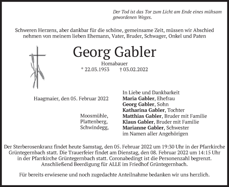 Hier finden Sie alle Traueranzeigen aus der Zeitung, die bisher für Georg Gabler erschienen sind. Weitere Traueranzeigen, die in der Zeitung erscheinen, werden hier ebenfalls aufgelistet