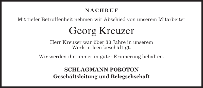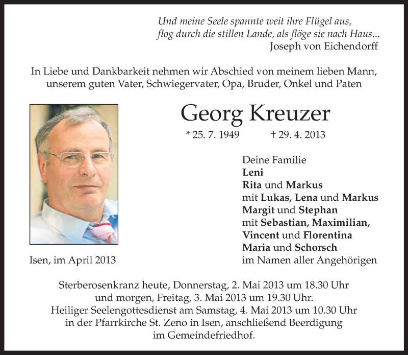 Hier finden Sie alle Traueranzeigen aus der Zeitung, die bisher für Georg Kreuzer erschienen sind. Weitere Traueranzeigen, die in der Zeitung erscheinen, werden hier ebenfalls aufgelistet