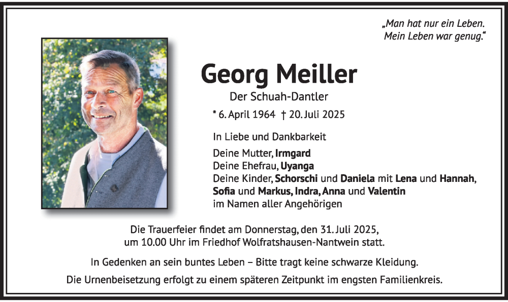 Hier finden Sie alle Traueranzeigen aus der Zeitung, die bisher für Georg Meiller erschienen sind. Weitere Traueranzeigen, die in der Zeitung erscheinen, werden hier ebenfalls aufgelistet