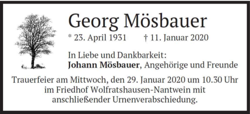 Hier finden Sie alle Traueranzeigen aus der Zeitung, die bisher für Georg Mösbauer erschienen sind. Weitere Traueranzeigen, die in der Zeitung erscheinen, werden hier ebenfalls aufgelistet