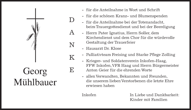 Hier finden Sie alle Traueranzeigen aus der Zeitung, die bisher für Georg Mühlbauer erschienen sind. Weitere Traueranzeigen, die in der Zeitung erscheinen, werden hier ebenfalls aufgelistet