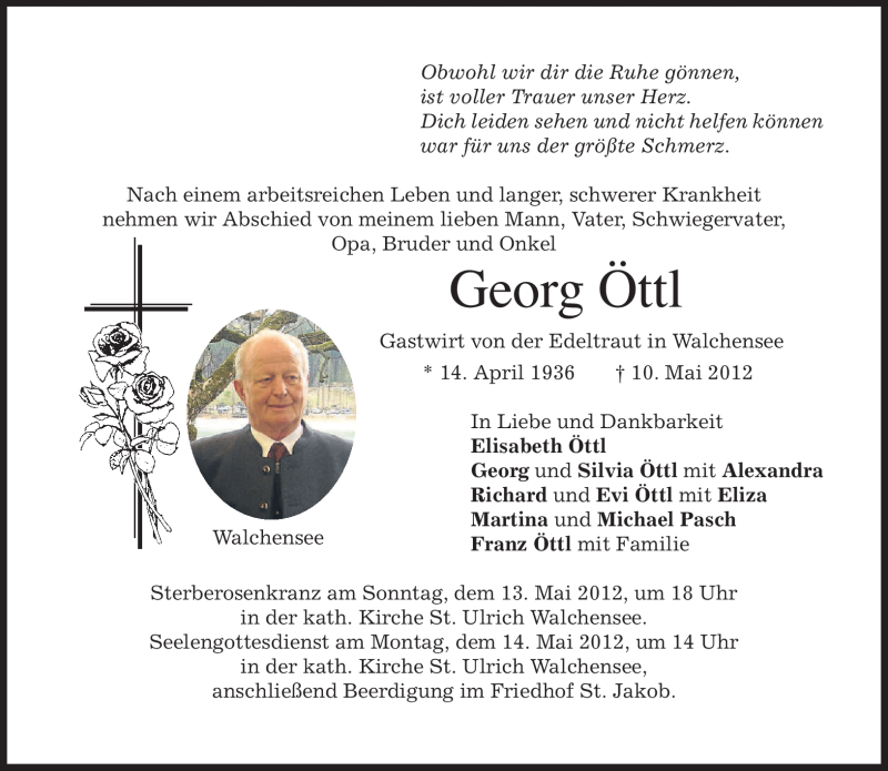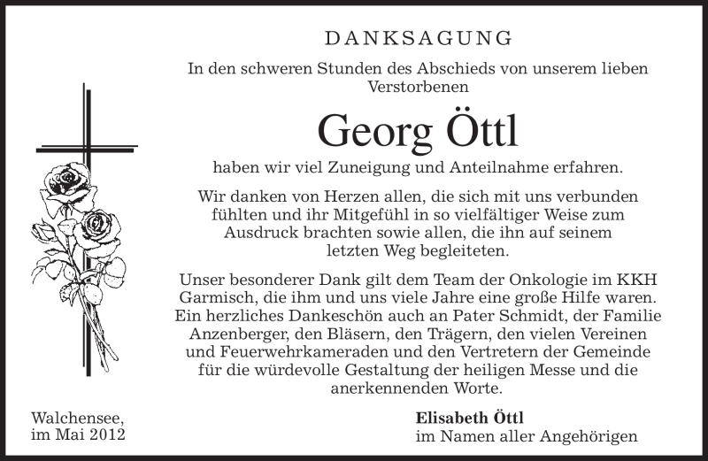 Hier finden Sie alle Traueranzeigen aus der Zeitung, die bisher für Georg Öttl erschienen sind. Weitere Traueranzeigen, die in der Zeitung erscheinen, werden hier ebenfalls aufgelistet