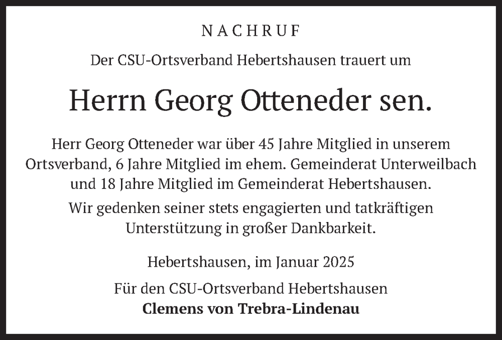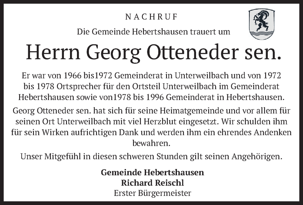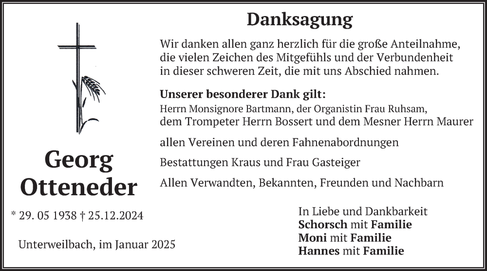 Hier finden Sie alle Traueranzeigen aus der Zeitung, die bisher für Georg Otteneder erschienen sind. Weitere Traueranzeigen, die in der Zeitung erscheinen, werden hier ebenfalls aufgelistet