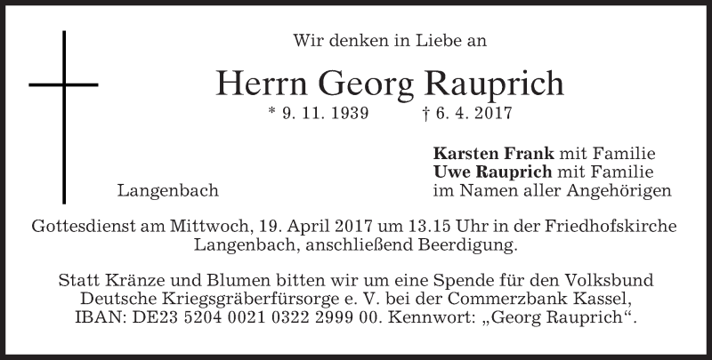 Hier finden Sie alle Traueranzeigen aus der Zeitung, die bisher für Georg Rauprich erschienen sind. Weitere Traueranzeigen, die in der Zeitung erscheinen, werden hier ebenfalls aufgelistet