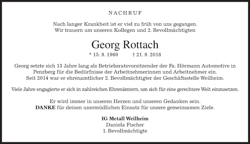 Hier finden Sie alle Traueranzeigen aus der Zeitung, die bisher für Georg Rottach erschienen sind. Weitere Traueranzeigen, die in der Zeitung erscheinen, werden hier ebenfalls aufgelistet