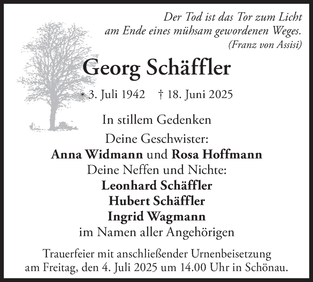 Hier finden Sie alle Traueranzeigen aus der Zeitung, die bisher für Georg Schäffler erschienen sind. Weitere Traueranzeigen, die in der Zeitung erscheinen, werden hier ebenfalls aufgelistet