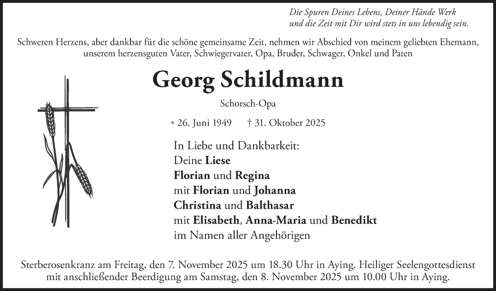 Hier finden Sie alle Traueranzeigen aus der Zeitung, die bisher für Georg Schildmann erschienen sind. Weitere Traueranzeigen, die in der Zeitung erscheinen, werden hier ebenfalls aufgelistet