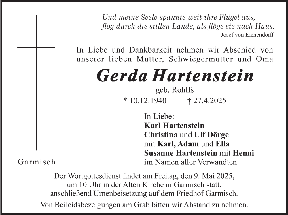 Hier finden Sie alle Traueranzeigen aus der Zeitung, die bisher für Gerda Hartenstein erschienen sind. Weitere Traueranzeigen, die in der Zeitung erscheinen, werden hier ebenfalls aufgelistet
