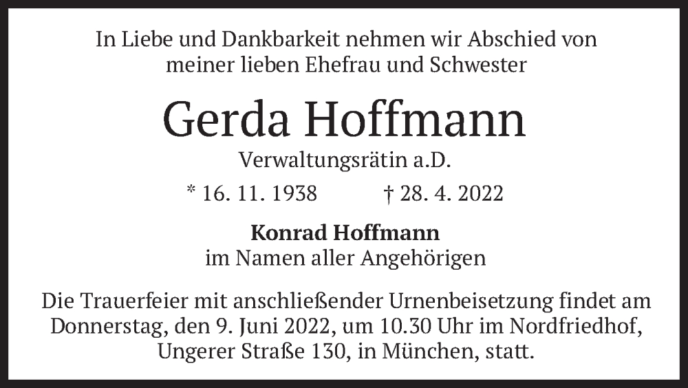 Hier finden Sie alle Traueranzeigen aus der Zeitung, die bisher für Gerda Hoffmann erschienen sind. Weitere Traueranzeigen, die in der Zeitung erscheinen, werden hier ebenfalls aufgelistet