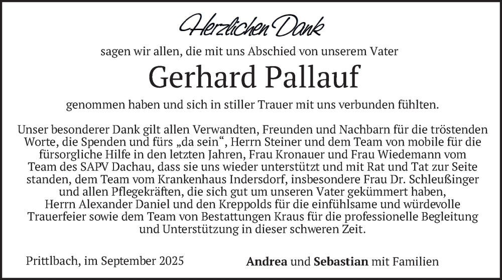 Hier finden Sie alle Traueranzeigen aus der Zeitung, die bisher für Gerhard Pallauf erschienen sind. Weitere Traueranzeigen, die in der Zeitung erscheinen, werden hier ebenfalls aufgelistet