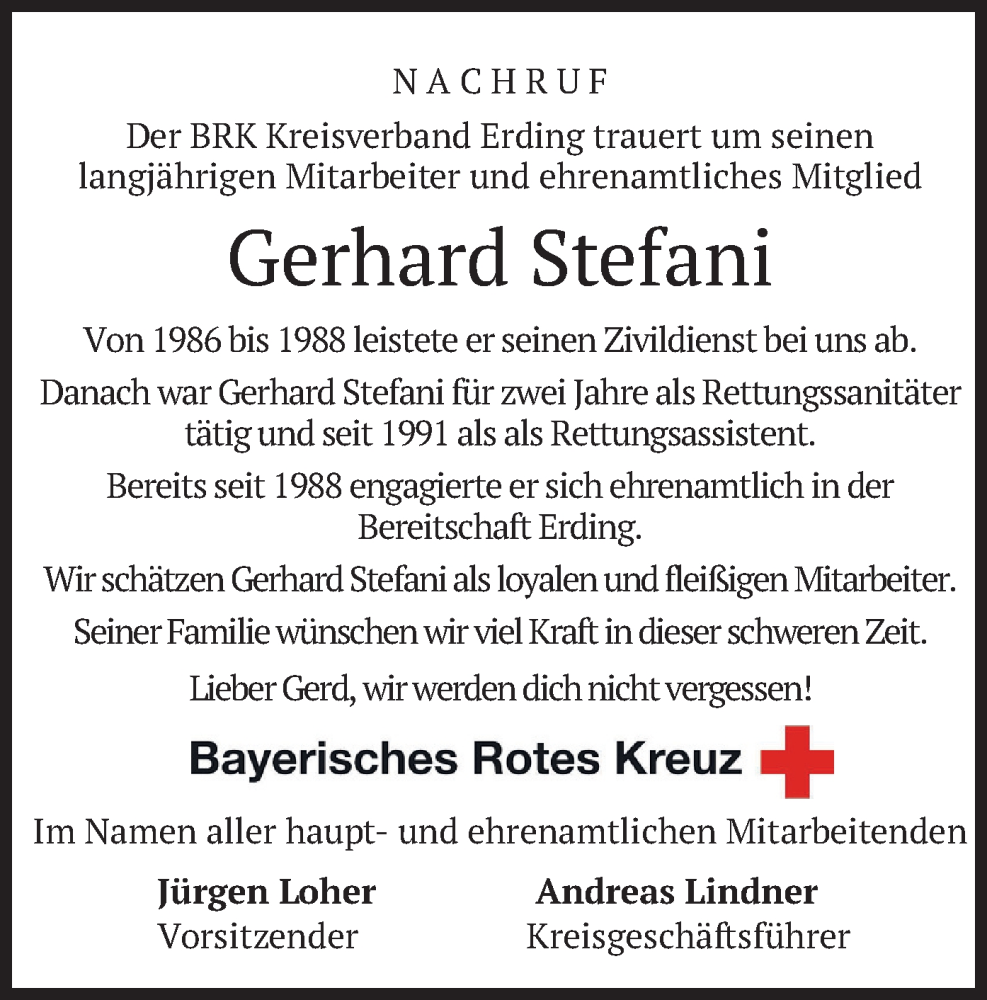 Hier finden Sie alle Traueranzeigen aus der Zeitung, die bisher für Gerhard Stefani erschienen sind. Weitere Traueranzeigen, die in der Zeitung erscheinen, werden hier ebenfalls aufgelistet