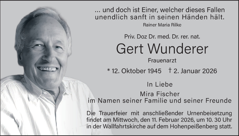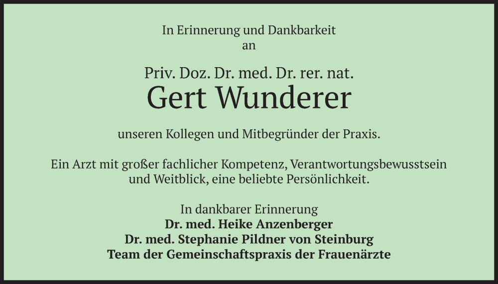 Hier finden Sie alle Traueranzeigen aus der Zeitung, die bisher für Gert Wunderer erschienen sind. Weitere Traueranzeigen, die in der Zeitung erscheinen, werden hier ebenfalls aufgelistet