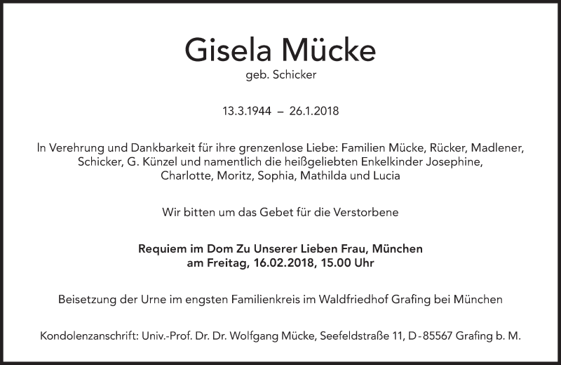 Hier finden Sie alle Traueranzeigen aus der Zeitung, die bisher für Gisela Mücke erschienen sind. Weitere Traueranzeigen, die in der Zeitung erscheinen, werden hier ebenfalls aufgelistet