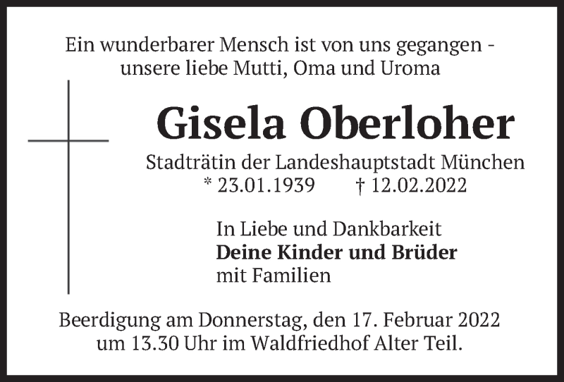 Hier finden Sie alle Traueranzeigen aus der Zeitung, die bisher für Gisela Oberloher erschienen sind. Weitere Traueranzeigen, die in der Zeitung erscheinen, werden hier ebenfalls aufgelistet