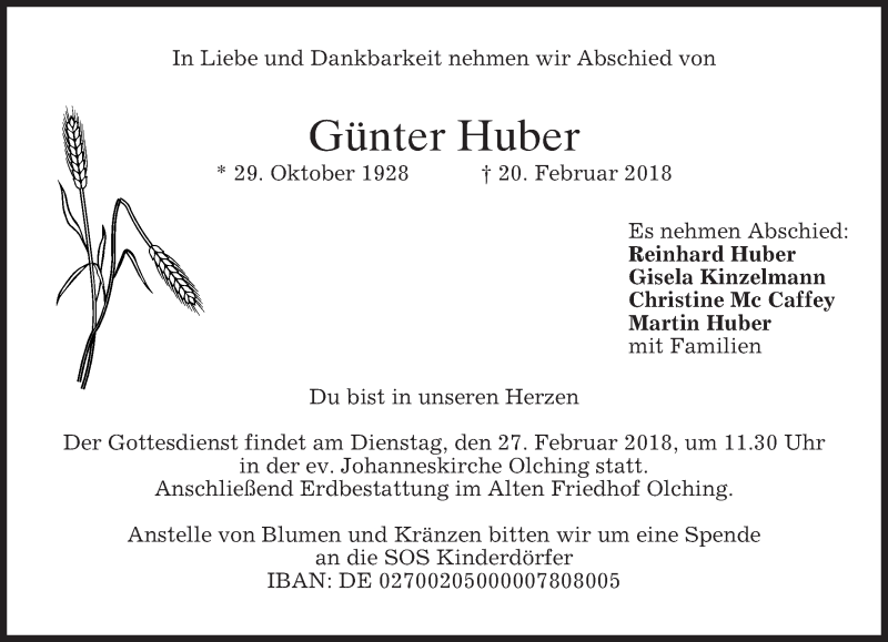 Hier finden Sie alle Traueranzeigen aus der Zeitung, die bisher für Günter Huber erschienen sind. Weitere Traueranzeigen, die in der Zeitung erscheinen, werden hier ebenfalls aufgelistet