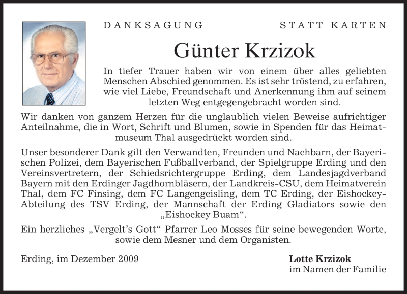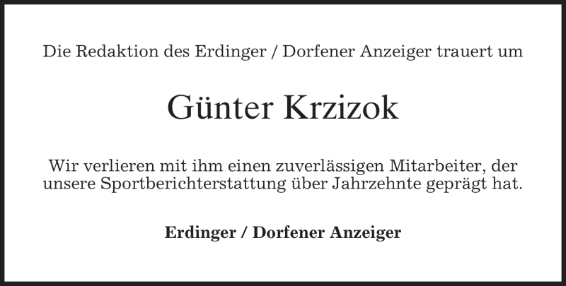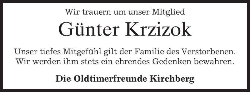 Hier finden Sie alle Traueranzeigen aus der Zeitung, die bisher für Günter Krzizok erschienen sind. Weitere Traueranzeigen, die in der Zeitung erscheinen, werden hier ebenfalls aufgelistet