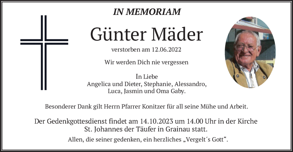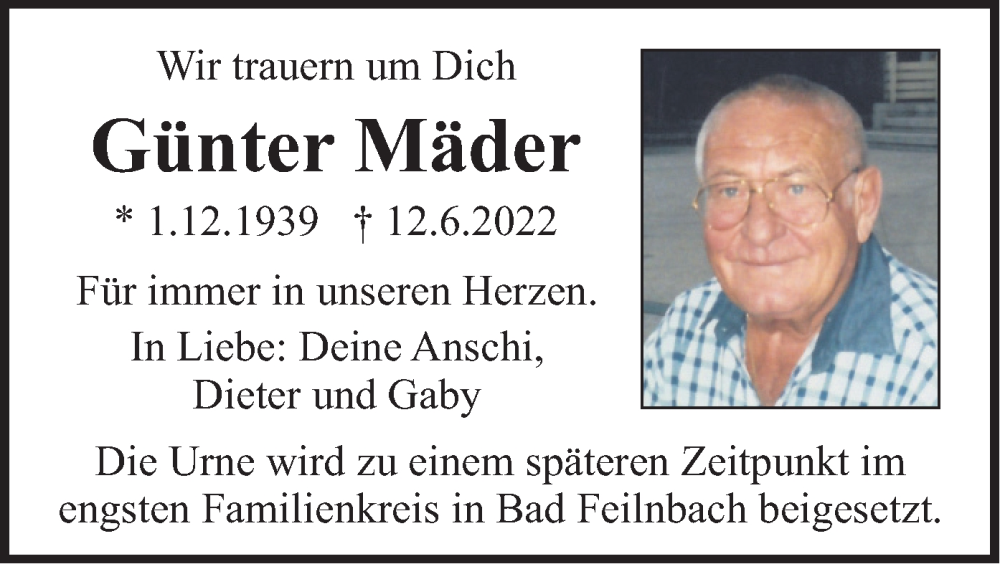 Hier finden Sie alle Traueranzeigen aus der Zeitung, die bisher für Günter Mäder erschienen sind. Weitere Traueranzeigen, die in der Zeitung erscheinen, werden hier ebenfalls aufgelistet