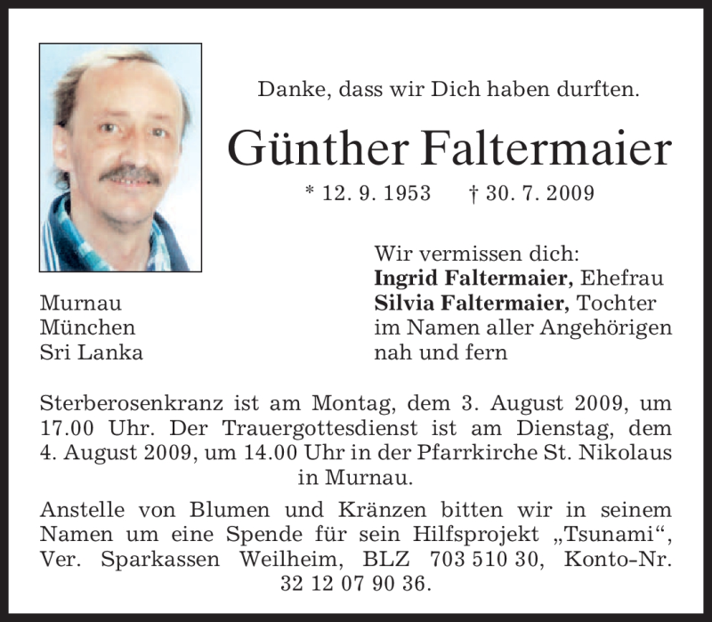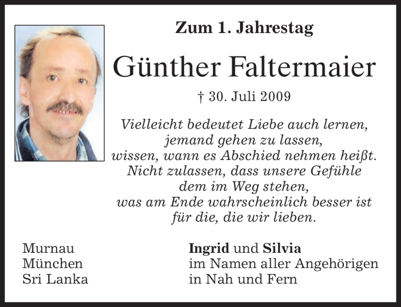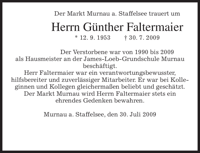 Hier finden Sie alle Traueranzeigen aus der Zeitung, die bisher für Günther Faltermaier erschienen sind. Weitere Traueranzeigen, die in der Zeitung erscheinen, werden hier ebenfalls aufgelistet