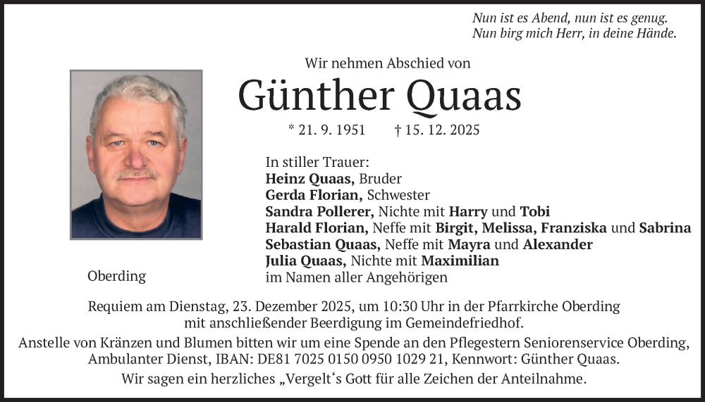 Hier finden Sie alle Traueranzeigen aus der Zeitung, die bisher für Günther Quaas erschienen sind. Weitere Traueranzeigen, die in der Zeitung erscheinen, werden hier ebenfalls aufgelistet